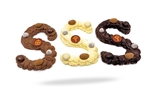 Verkrijgbaar in de letter S en keuze uit melk, puur of witte chocolade. (±220gr).