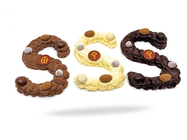 Grote ambachtelijke chocoladeletter “S” van de hand van “Rubenz Chocolatier” uit Mierlo, van Belgische Callebaut chocolade en roomboter. Gedecoreerd met chocolade pepernoten, kaneelamandelen, gechocolateerde crispy ballen en een chocolade decoratie Van Sint! In een luxe cadeauverpakking.